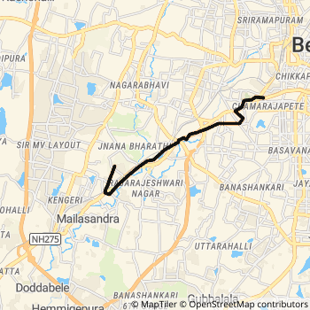 Bus no.222K is operated by BMTC between Shivajinagar and Kengeri Khb Quarters/Shirke Apartment in .