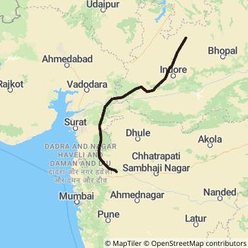 Pune - Gwalior Weekly Express ( 11101) Rail route Map