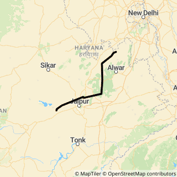 Daurai (Ajmer) - New Delhi Shatabdi Express ( 12016) Rail route Map