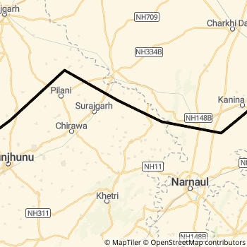 Delhi Sarai Rohilla - Bikaner SF Express (via Churu) ( 12457) Rail route Map