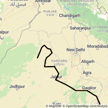 Bilaspur - Bikaner Weekly Antyodaya Express ( 14720) Rail route Map