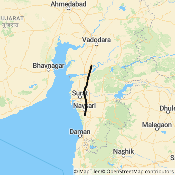 Bhilad - Vadodara Express ( 22929) Rail route Map