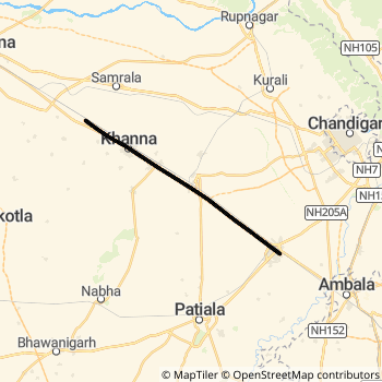 Ludhiana - Ambala Cantt. MEMU ( 64524) Rail route Map