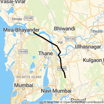Vasai Road - Panvel MEMU ( 69168) Rail route Map