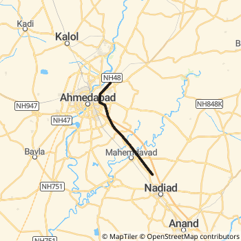 Anand - Gandhinagar MEMU ( 69191) Rail route Map