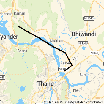 Vasai Road - Diva DEMU ( 71081) Rail route Map