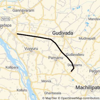 Machilipatnam - Vijayawada DEMU ( 77208) Rail route Map